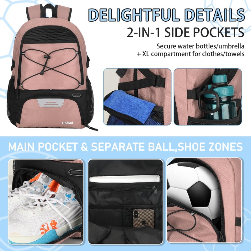 - Dedicated Ball & Shoe Compartments:Features a top ball pocket (fits size 7 soccer/basketballs) and a separate ventilated shoe compartment (size 10 cleats) with metal air holes to keep odors away. Ideal for multi-sport athletes