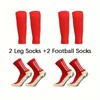 Soccer Grip Socks,Shin Guard Sleeves Set for Football Basketball for Men and Women One Size:_2Set-Red