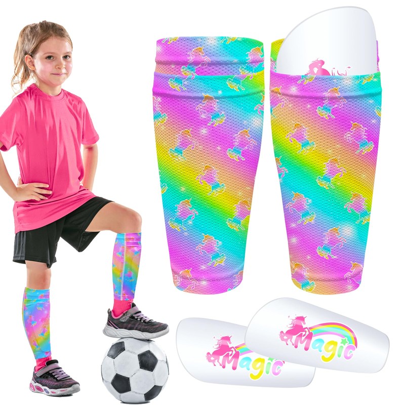 - Soccer Shin Guards Kids Girls Youth, Shin Pads Shin Guard Protection Kids Girls Toddler, Soccer Shin Guards Sleeves for Kids 2-7 Years Old Girls Toddlers (Rainbow Unicorn, Small)