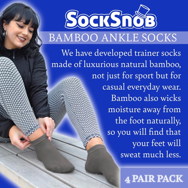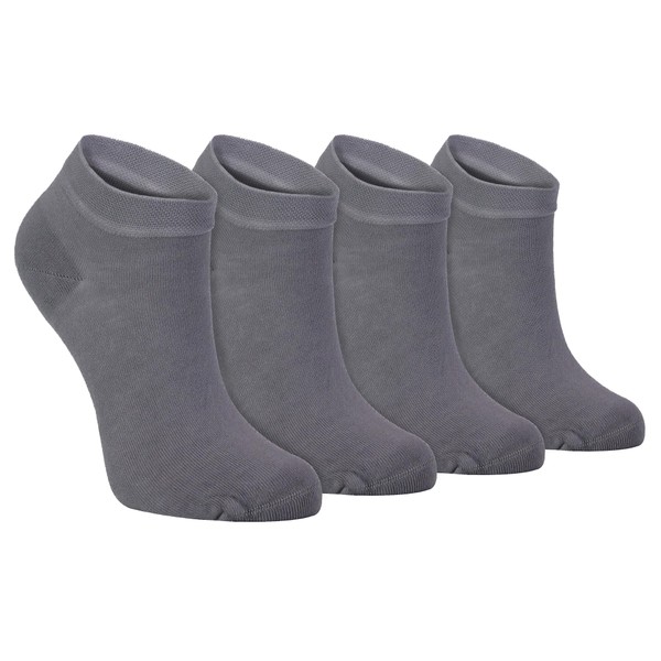 Sock Snob - Womens 4 Pairs Bamboo Breathable Low Cut Ankle Trainer Socks (4-8, Grey)