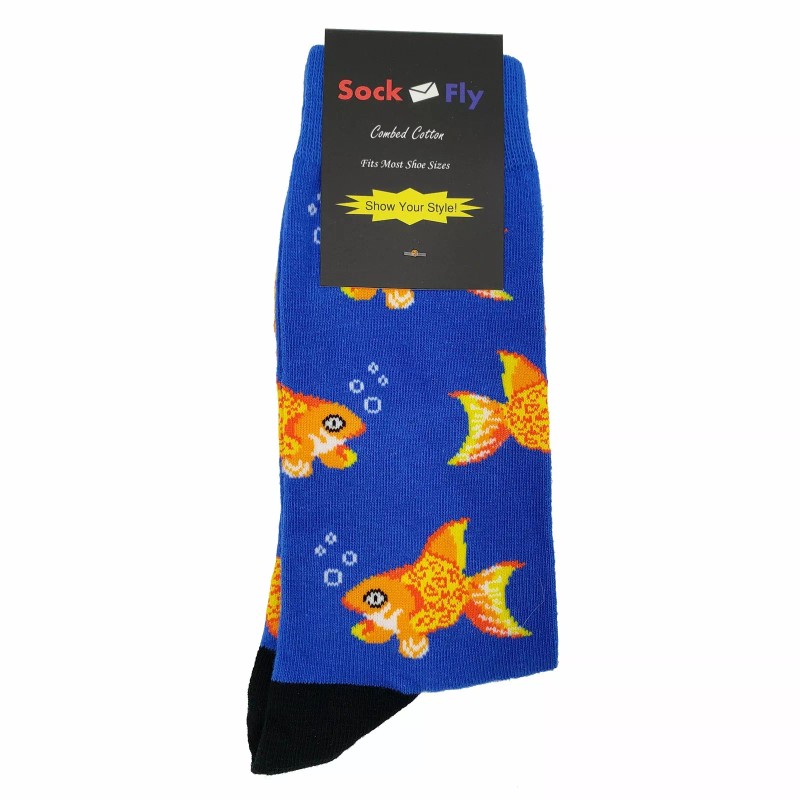 Sockfly NWT Goldfish Dress Socks Novelty Men 8-12 Blue Crazy Fun Sockfly