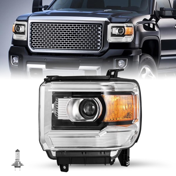 - đăFITMENTăHeadlights Assembly Compatible with 2014-2018 GMC Sierra 1500 Base / Denali / SLE / SLT; 2015-2019 GMC Sierra 2500HD Base / Denali / SLE / SLT; 2015-2019 GMC Sierra 3500HD Base / Denali / SLE / SLT / Chassis models only. Does Not Fit Models with LED DRL Headlights and 2014 Old Body Style Models. High / Low beam bulb type: H7 (INCLUDED); Signal Light: WY21/5W (NOT INCLUDED). OEM Part Number#: 23130718, 23130717; Partslink Number#: GM2503394, GM2502394.