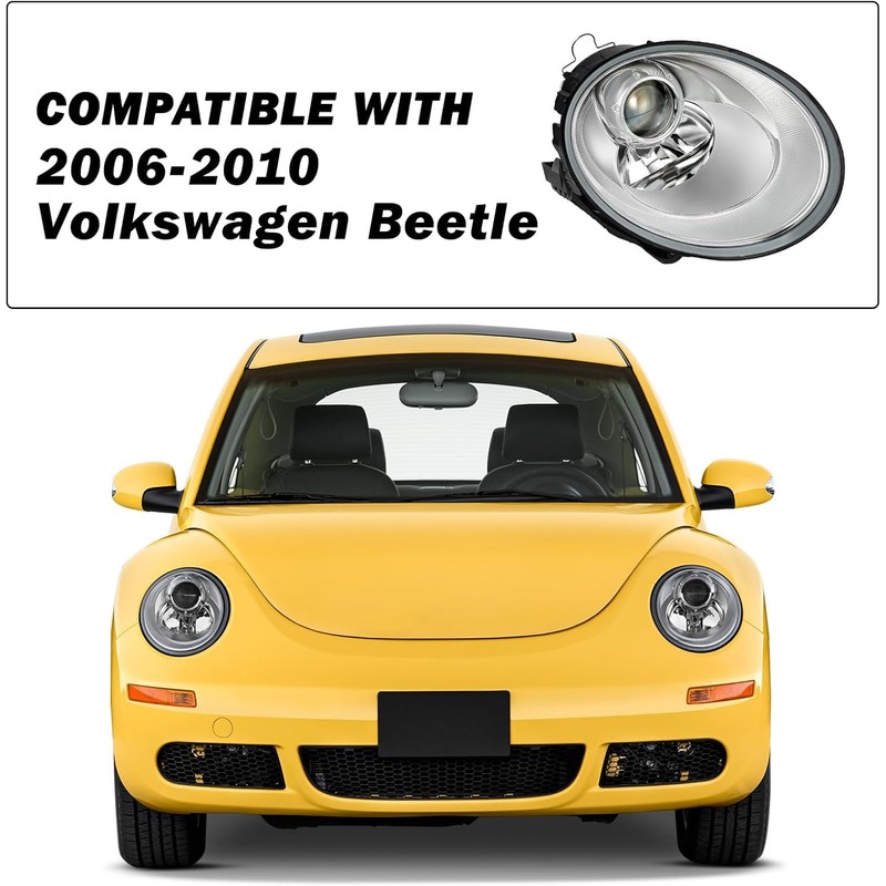 - 5) EASY of INSTALLATION: Plug-n-play installation. Direct Bolt-On OE Fitment or Replacement for the Beetle Headlights Stock Unit; Package comes with both Driver (Left) & Passenger (Right) side headlights for 2006-2010 VW Beetle Halogen Headlights.