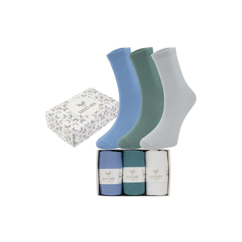 SOCKS BOX Womens Soft Cotton Breathable Above Ankle Crew Socks with Gift Box (3 Pairs, Mixed)