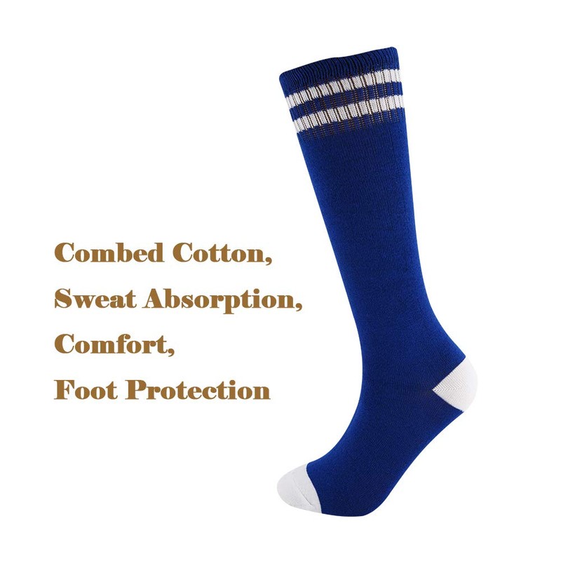 - 2.KNEE-HIGH DESIGN – Our soccer socks for kids are specially designed in knee-high length for comprehensive protection for ankles and calves. These sports socks for boys and girls are in vibrant colors and designed with two white stripes on the cuffs, the whole look is cool and stylish.
