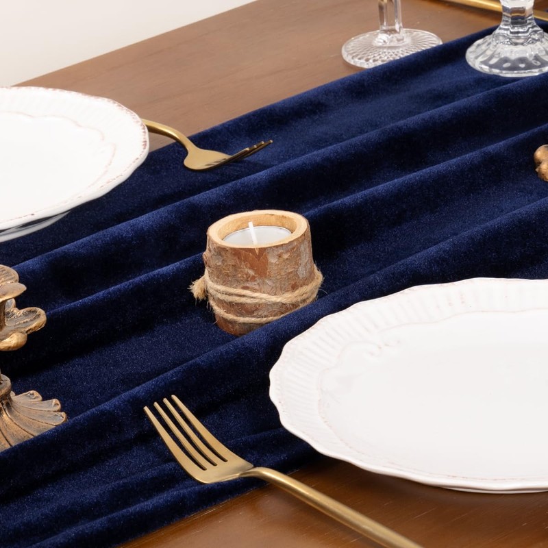 Socomi 4pcs Navy Blue Velvet Table Runner Christmas Cloth Decor 20 x 120 Inches 10ft Fabric Luxurious Thanksgiving Wedding Runner for New Year Bridal Shower