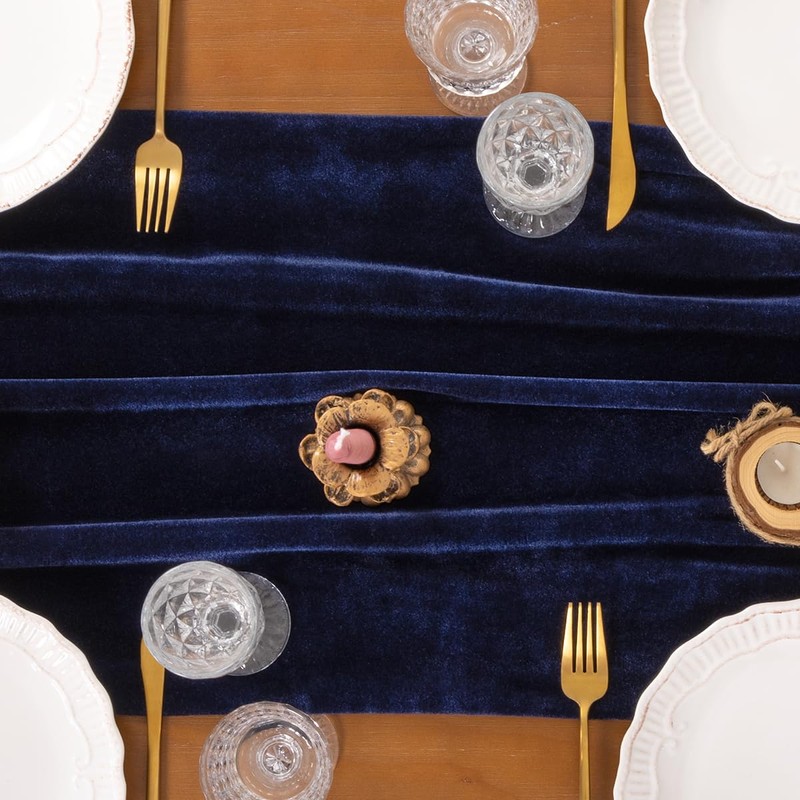 Socomi 4pcs Navy Blue Velvet Table Runner Christmas Cloth Decor 20 x 120 Inches 10ft Fabric Luxurious Thanksgiving Wedding Runner for New Year Bridal Shower