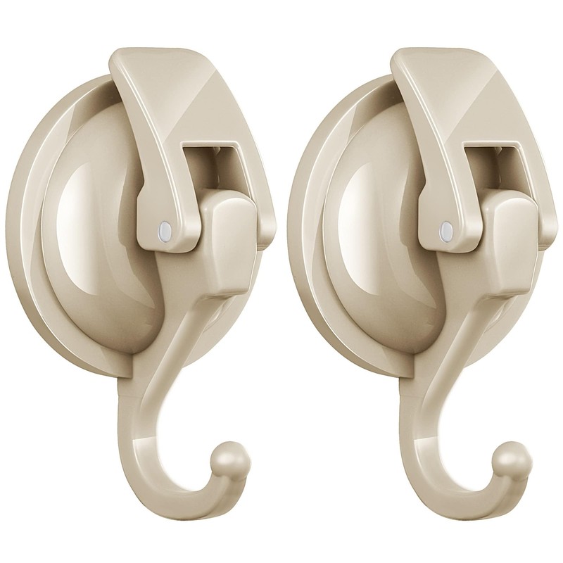 SOCONT Heavy Duty Vacuum Suction Cup Hooks, Oyster White Plated Polished Super Suction for Kitchen Bathroom, 2 Pack