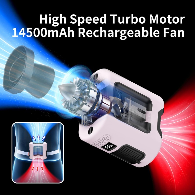 - 【Powerful and Adjustable Airflow】Featuring a high-speed turbine motor with a maximum speed of 14600 RPM and airflow reaching 20.66ft/s, the fan has 5 adjustable wind speeds, allowing you to choose the ideal cooling intensity for your needs, from gentle breezes to powerful wind