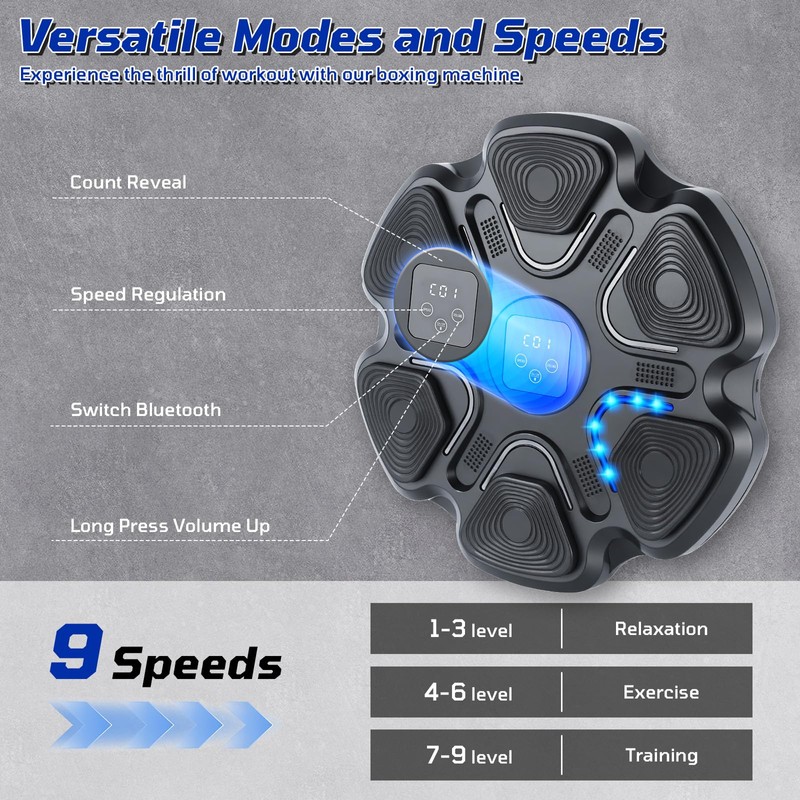 - Versatile Modes and Speeds: Experience the thrill of workout with our boxing machine! Equipped with 9 adjustable speeds, this machine caters to the needs of everyone, from beginners to fitness enthusiasts. Whether you're looking for a light stretch or an intense cardio session, our boxing machine has got you covered. Enjoy a versatile workout experience tailored to your fitness goals.
