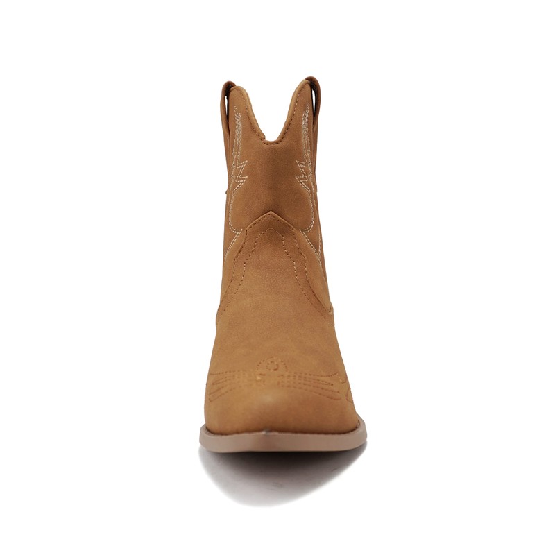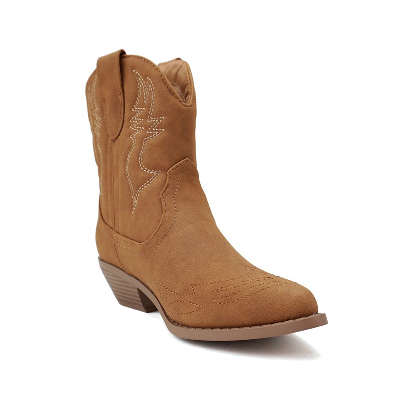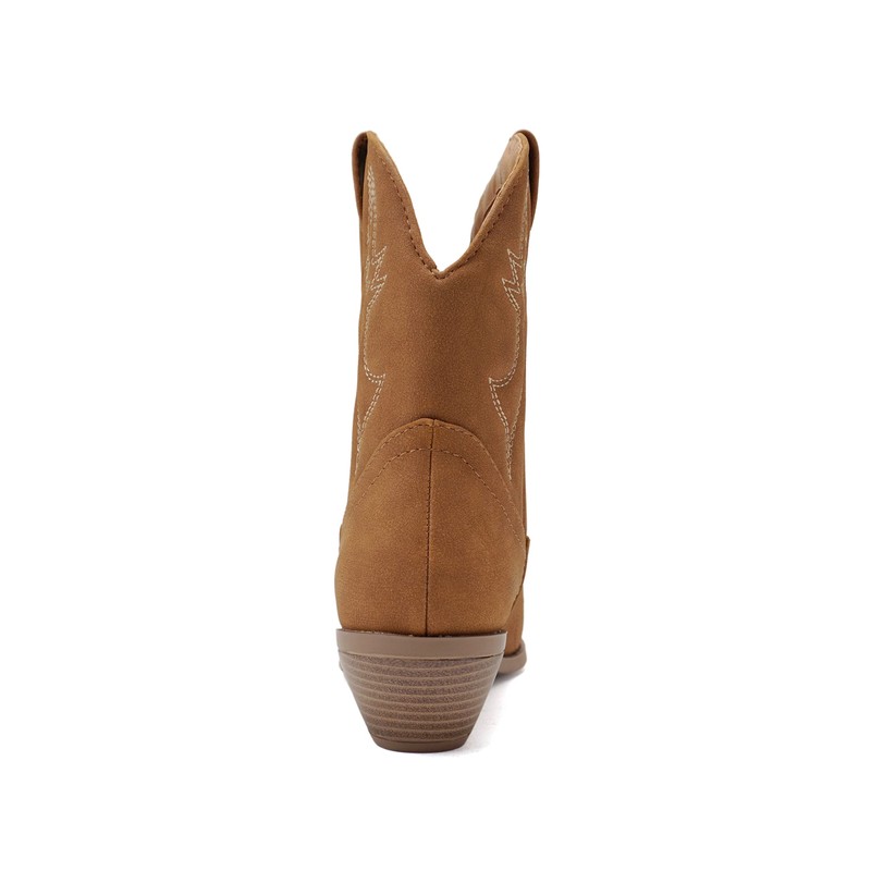 Soda RIGGING ~ Women Western Stitched Pointe Toe Low Heel Ankle Mid Shaft Boots (D-TAN NUBUCK, us_footwear_size_system, adult, women, numeric, medium, numeric_6)