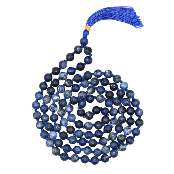 Sodalite Buddhist Prayer Beads Japa Mala with 108 Meditation Beads (Hand Knotted)