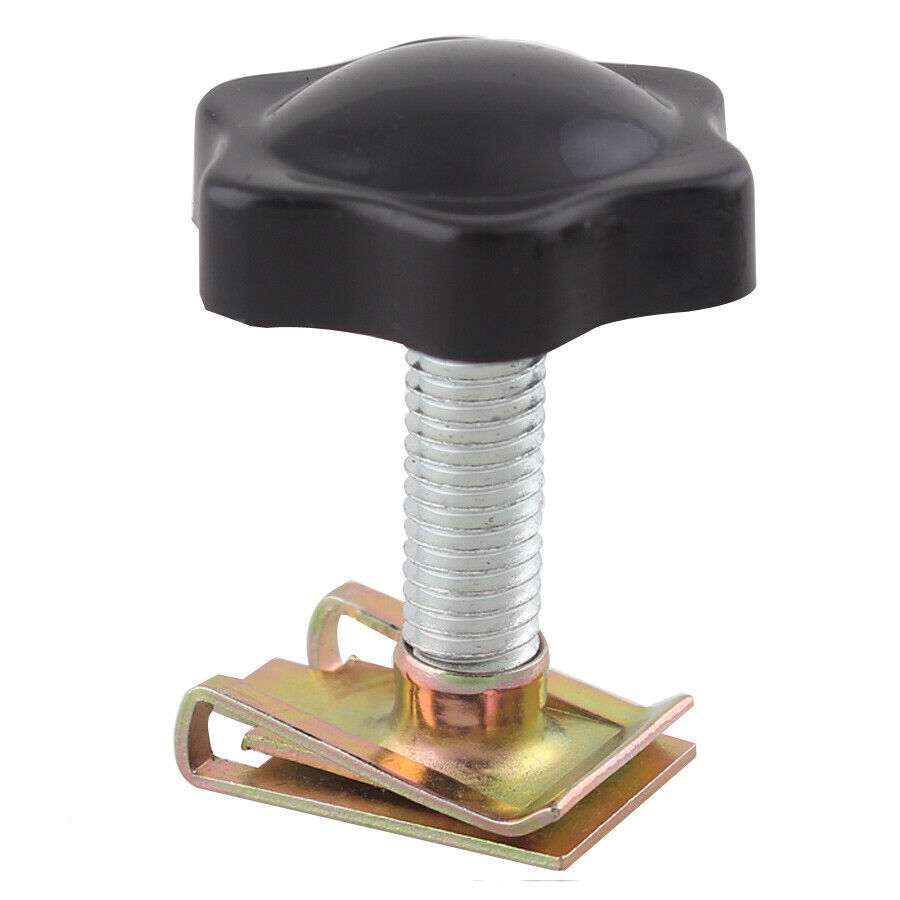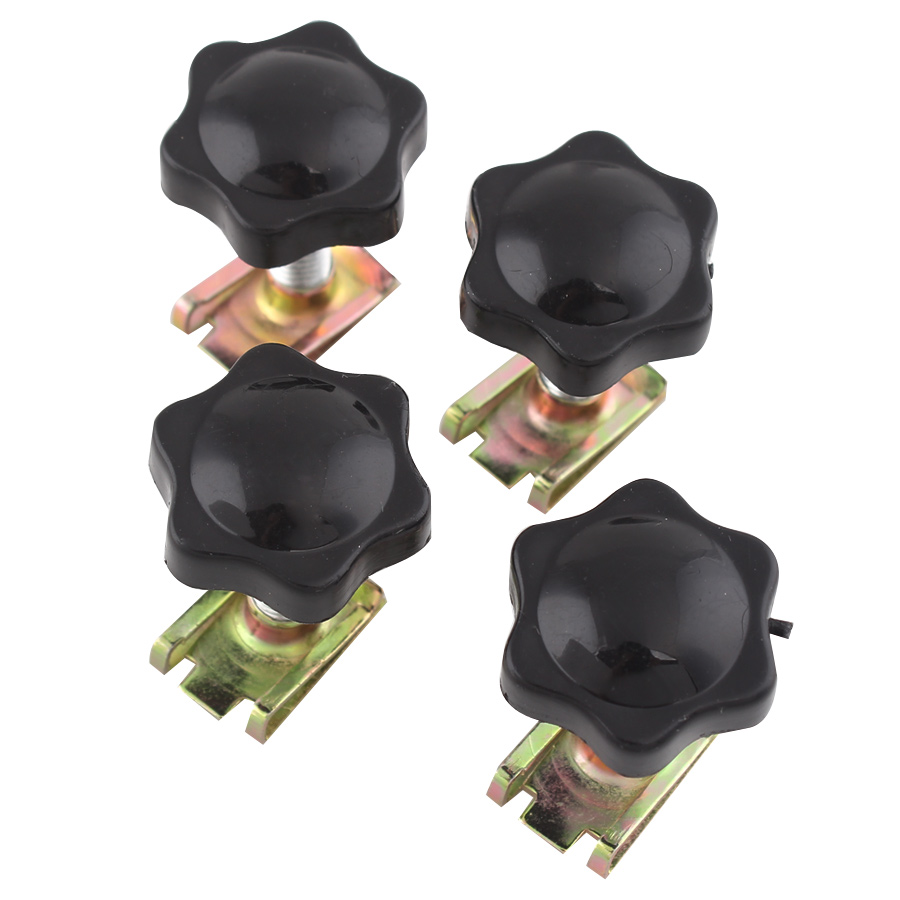 Black plastic Knobs with Steel Screw, Metal U-Clips.