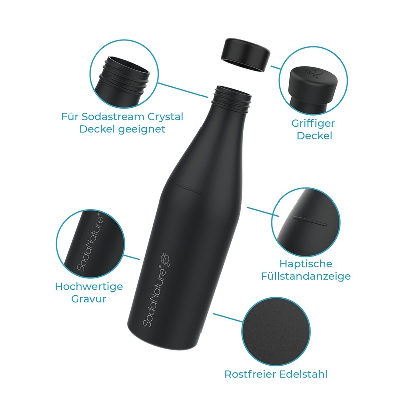 - ⭐ 𝗘𝗜𝗡𝗙𝗔𝗖𝗛 𝗦𝗣𝗥𝗨𝗗𝗘𝗟𝗡 & 𝗟𝗢𝗦 - Einfach die 700ml SodaNature Edelstahl-Trinkflasche direkt in deinem SodaStream Crystal aufsprudeln und sofort mitnehmen. Endlich kein Umfüllen mehr.