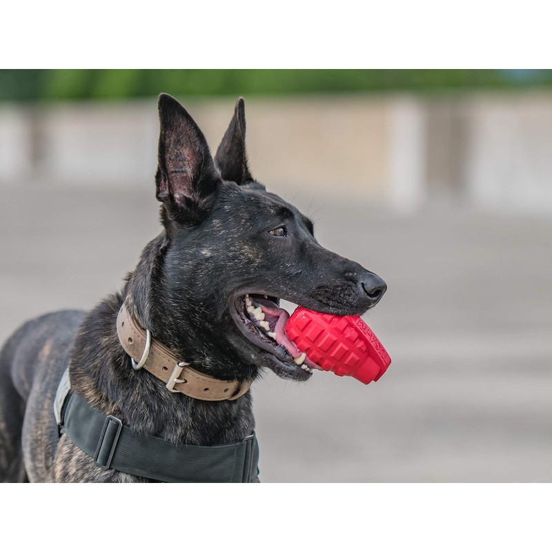 SodaPup USA-K9 Dog Toy- Natural Rubber Grenade Shaped Chew Toy - Treat Dispenser - Slow Feeder - for Heavy Chewers - Made in USA - Red - Large