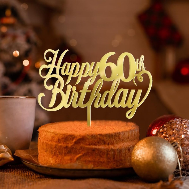 Sodasos - Decoración acrílica para tartas de cumpleaños 60 de feliz cumpleaños de doble cara dorada para fiesta de cumpleaños de 15 años de edad, decoraciones para tartas de 60 años (60)