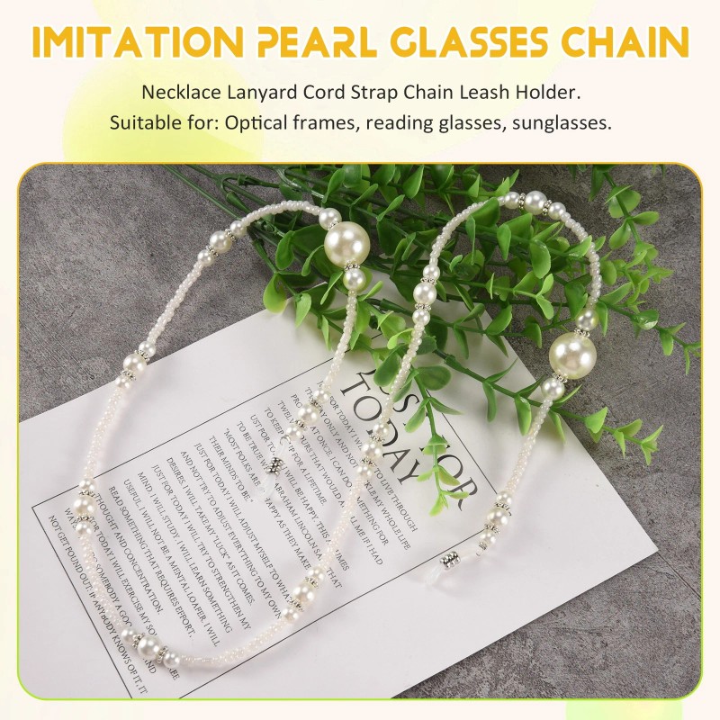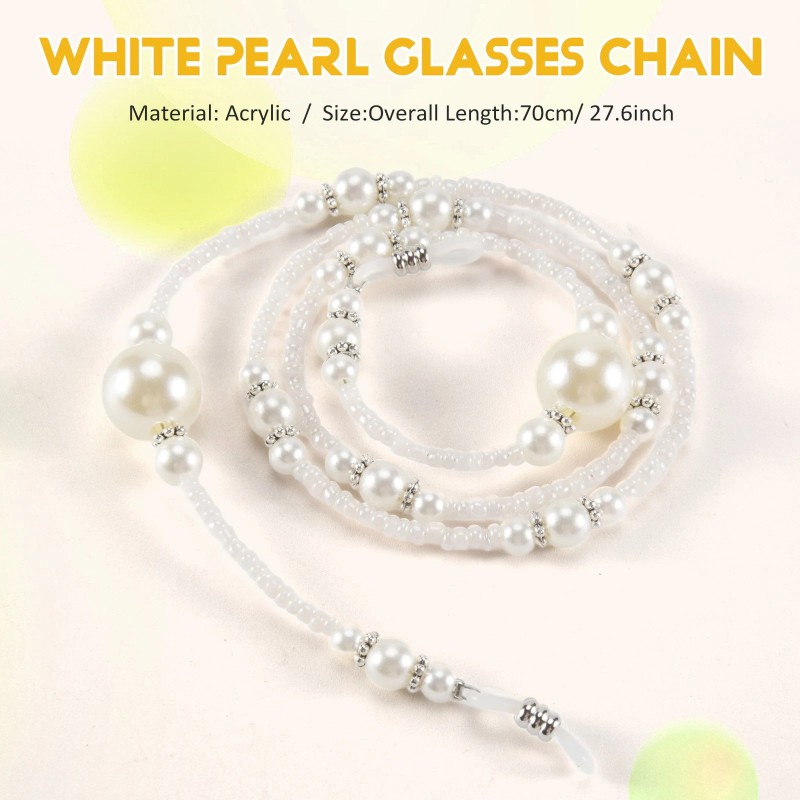 SODIAL 1x White Beaded Sunglass Eyeglasses Reading Glasses Chain Cord Holder V9Q37950