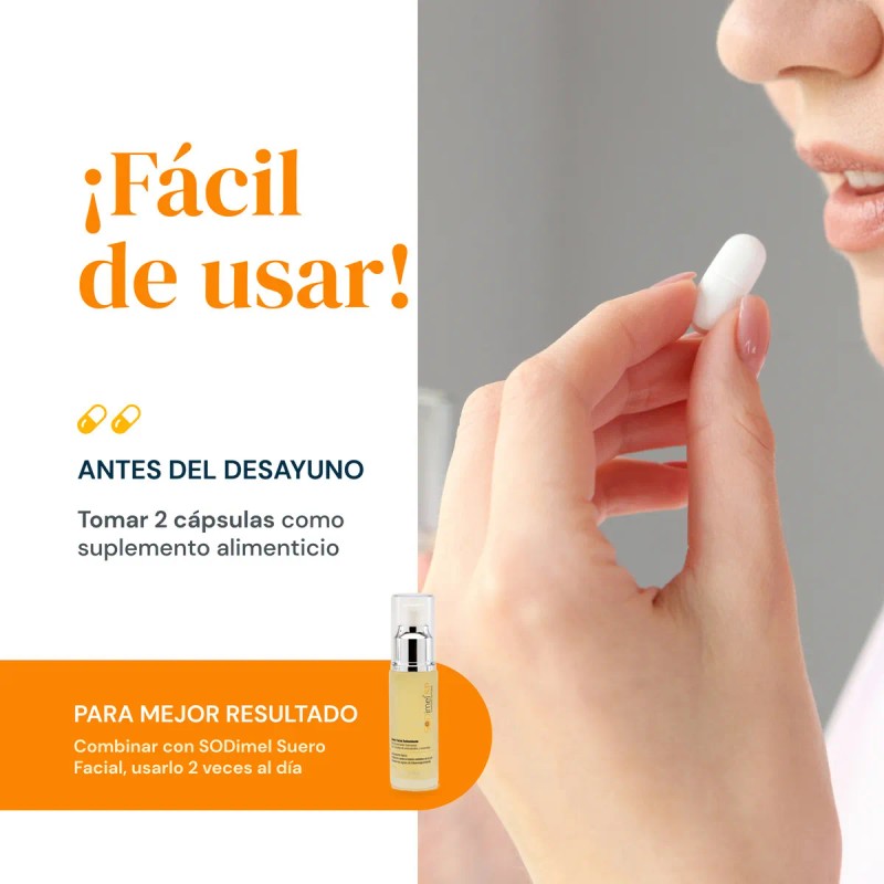 Sodimel 60 caps Antioxidante Antienvejecimiento con Superóxido Dismutasa, Aminoácidos y Ceramidas suplemento previene el Envejecimiento Pr