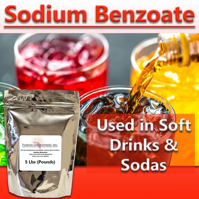 Sodium Benzoate 99% USP/FCC Grade 5 Lb (Pound) Preservative, Additive