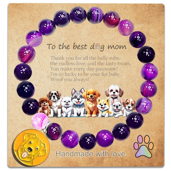 SODLYUE Dog Mom Gifts for Women, Amethyst Dog Mom Bracelets, Dog Gifts for Dog Lovers with Message Card, Golden Retriever Gifts for Birthday Christmas Valentines Day Mothers Day, Stone, no gemstone