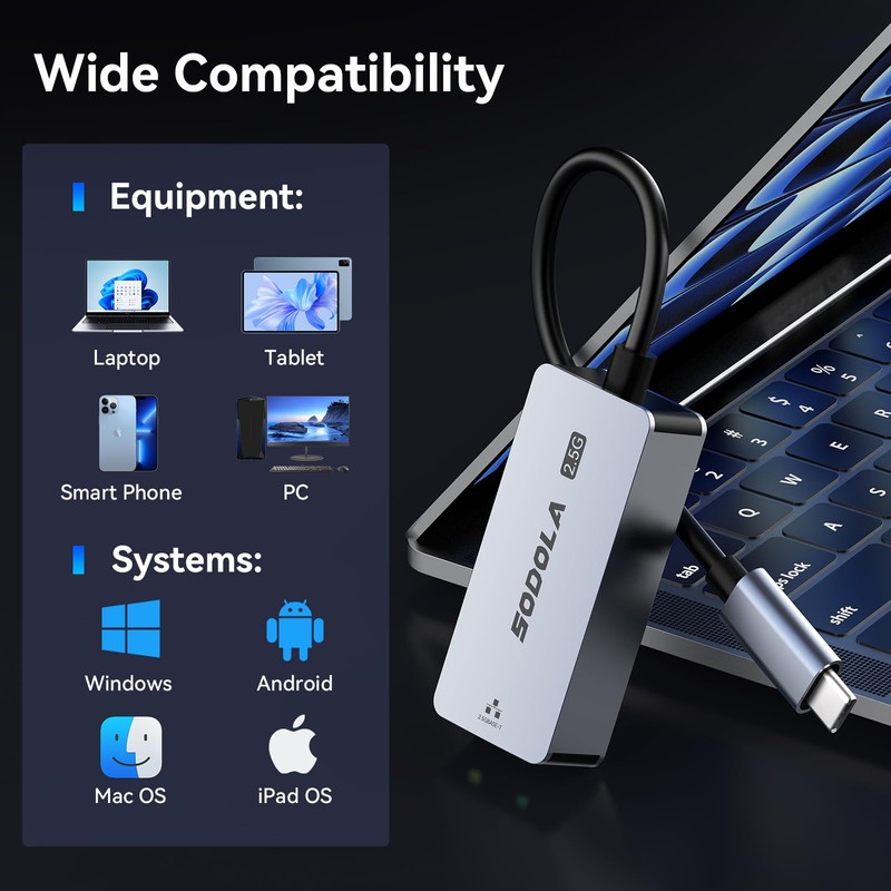 SODOLA Type-C to RJ45, 2.5G Ethernet Adapter