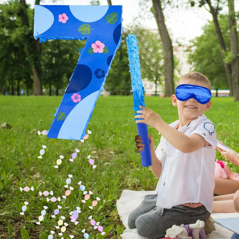 - Package Contain: This set includes a hawaii pattern number 7 Pinata, a stick, a blindfold,with a ring at the top for easy hanging.It is very suitable for creating a cheerful party atmosphere for birthday party.