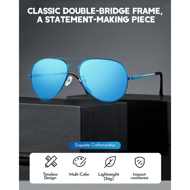 - TEARDROP SHAPE: Pilot sunglasses have a teardrop-shaped lens that provides the most coverage from sunlight, so you can see clearly when you are driving or doing other outdoor activities, no matter how sunny it is.
