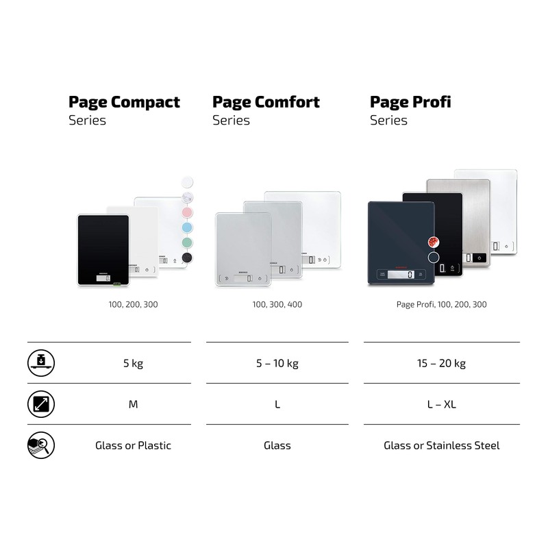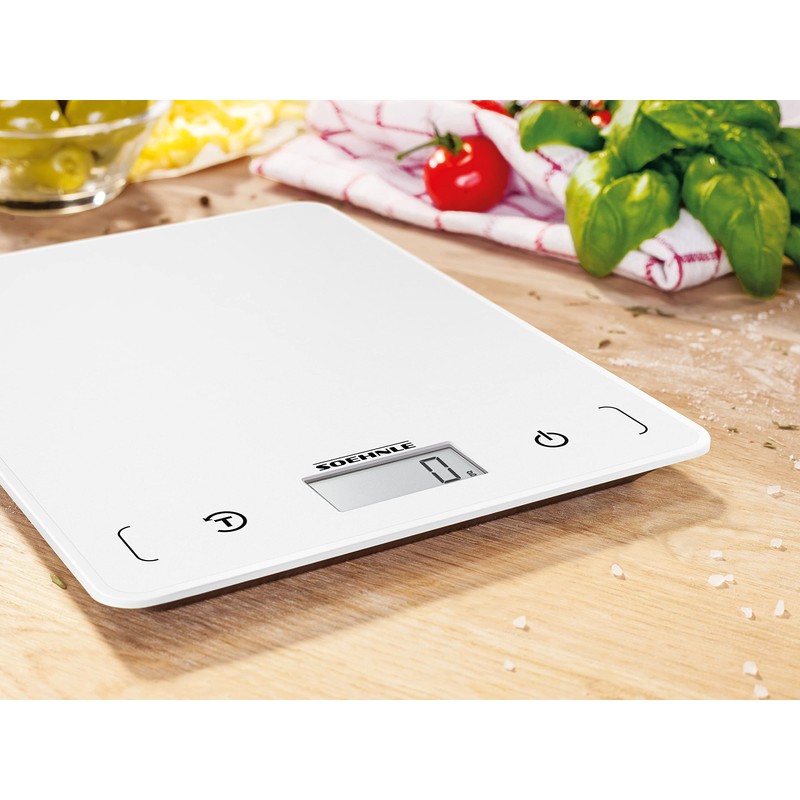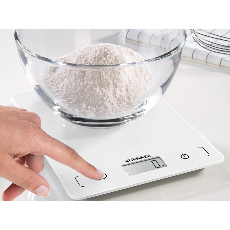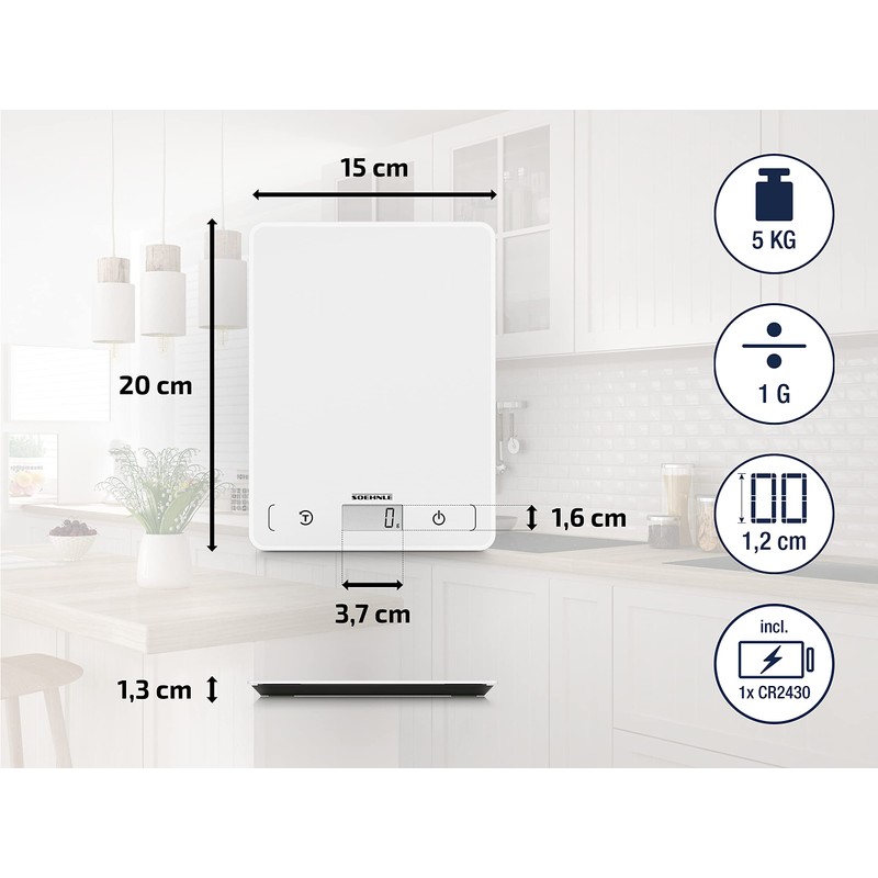 - Praktischer Lieferumfang - Soehnle Küchenwaage Page Compact 200, inkl. Batterien, max. Tragkraft 5 kg mit 1 g Teilung, LCD-Anzeige, Sensor-Touch, Abschaltautomatik, Artikelnummer 61508