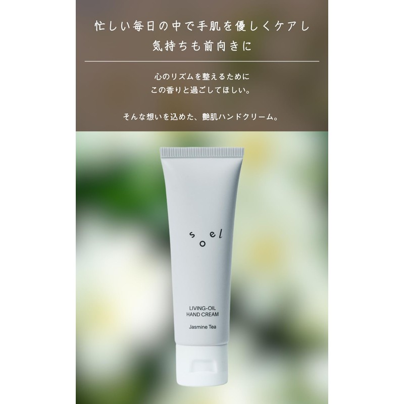 Soel LIVING-OIL HAND CREAM 1.8 oz (50 g), Soel Hand Cream, Natural Plant Source, Jasmine Tea Scent, Non-Sticky, Stretchy Texture, Organic