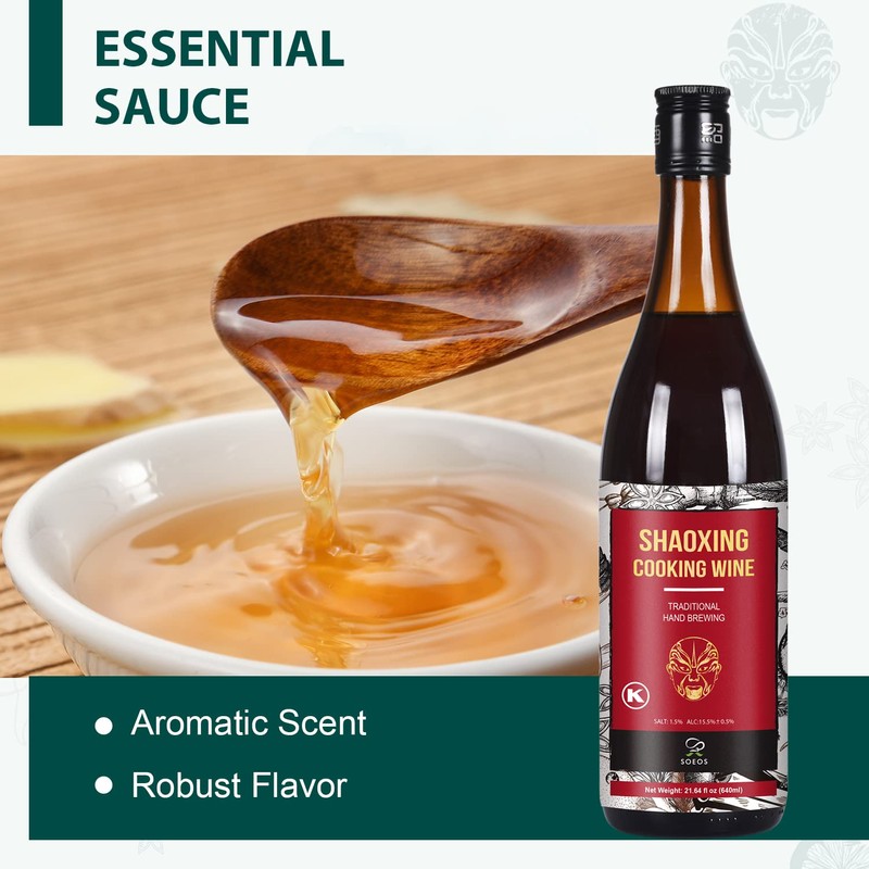 Soeos Shaoxing Wine, Shaoxing Rice Wine, Chinese Cooking Wine, Rice Cooking Wine, Shaoxing Wine Chinese Cooking Wine, Shao Hsing Rice Wine, 21.64 fl oz (640ml),1 Pack, Regular Cooking Wine