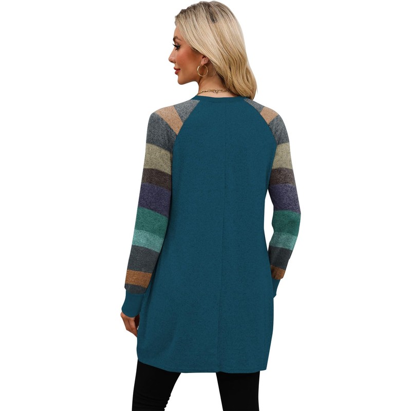 Soesdemo Striped Green Tunic Top for Women Long Sleeve Crew Neck Shirts Casual Fashion Soft 2024 Fall Outfits Comfy Loose Fit Lightweight Pullover Tshirt Dress with Pockets