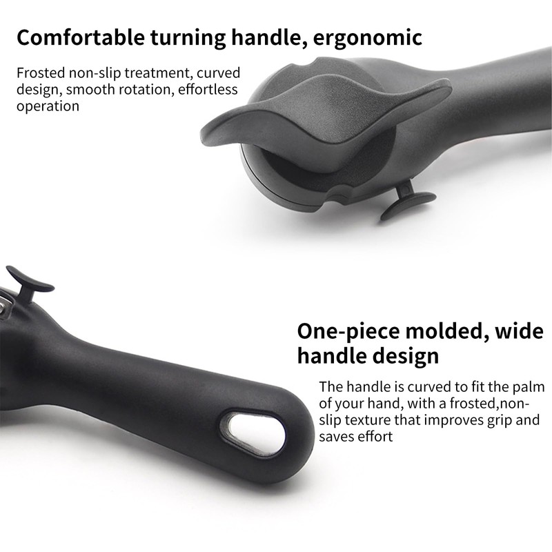 - Ergonomic design: the principle of human body mechanics, can opener, one-piece molding, with high hardness ABS stainless steel material, comfortable to turn the handle, durable sharp, not easy to wear and tear