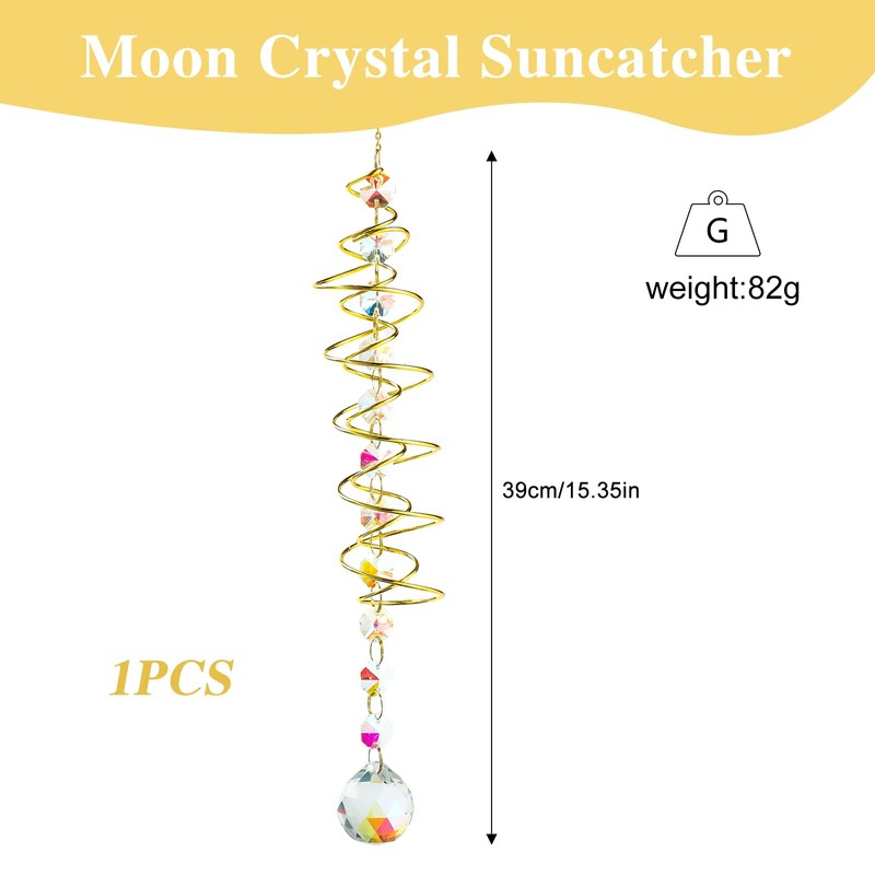 - Sun catcher crystal: sun catcher crystal wind chime consisting of 11 octagonal chakra crystals and a crystal ball that moves up and down when the special, double-textured spiral tail is rotated, creating a magical optical illusion