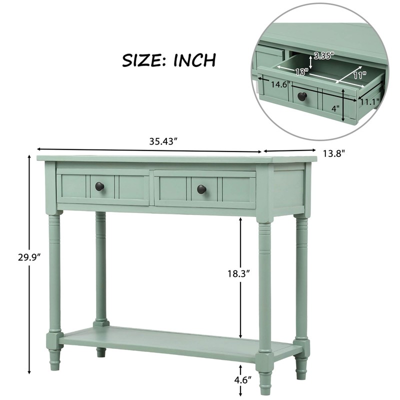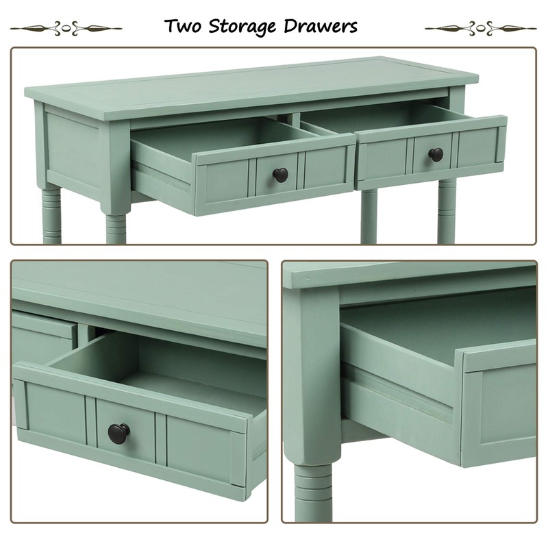 Sofa Table with Drawers Entryway Table Wood Console Table with Two Storage Drawers and Bottom for Living Room (Retro Blue)