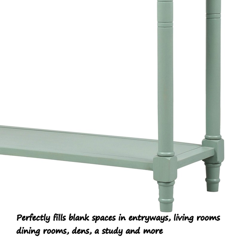 - ☞Vintage antique inspired console table finished in a rich retro blue features versatile timeless design.