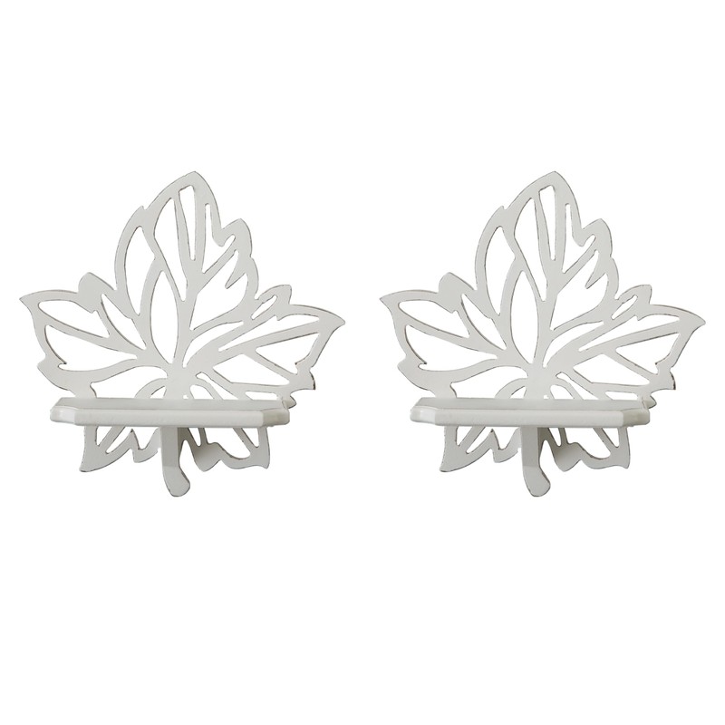 SOFE Leaf Shape Candle Wall Sconces Set of Two, White Wall Mounted Candle Holder, Rustic Wood Wall Shelves, Decorative Candle Shelf for Pillar Candles, Jars, Mini Planters, Living Room, Kitchen