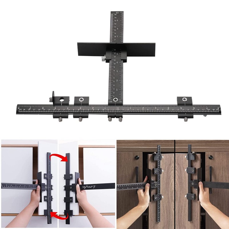 - ★Versatile Use of Jig: This aluminum alloy cabinet handle jig is ideal for installing kitchen drawers, cabinets, door handles, and drawer fronts, hinges or shelves. Suitable for any cabinet door stile and rail, including plastic doors and recessed drawer fronts