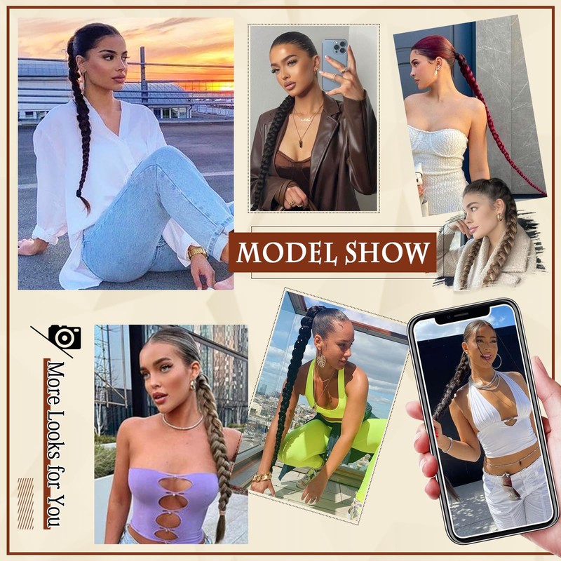 - Instant braided ponytail: the long, straight braided extensions braid with hair band is 26 inches / 66 cm long and weighs about 140 g. It is easy to wear and is attached to your own hair with a rubber band that does not fall out easily and adapts naturally when worn. Lightweight, soft and comfortable hair that can be worn all day long.