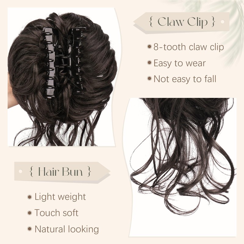 - Multiple Occasions: This claw clip chignon hair accessory with tendrils will give you a natural, elegant and stylish hairstyle in no time. Perfect for women's daily use, it is also the best hair accessory for theme parties, proms, weddings, dating, Halloween, Christmas and other occasions. It is also a beautiful gift for your friends and family.