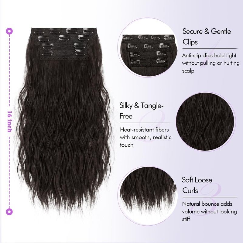 - [Flexibles 4er-Set]: Enthalten sind: 2 x 12 cm Tressen (je 2 Clips), 1 x 14 cm Tresse (3 Clips), 1 x 17 cm Tresse (4 Clips). Einfach zu befestigen, zu schichten oder zu repositionieren – so können Sie das Volumen gezielt dort platzieren, wo Sie es wünschen.