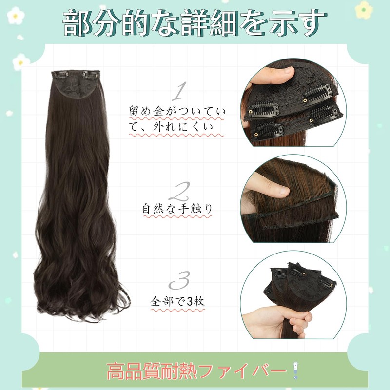 Sofeiyan Long Collar Wig, Curl, 23.6 inches (60 cm), Clip Type, Set of 3, One Touch Extension, Free Combination, Wig Partial Wig, Daily Use, Heat Resistant, Light Brown