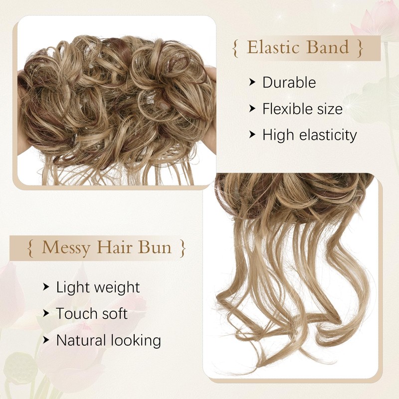- New Fashion Style: This curly messy hair bun scrunchie extensions with a few loose strands of long wavy hair, when you wear it,looks gentle and temperamental. A messy look that looks more natural and casual than a neat bun. Great for girls and ladies of all ages!
