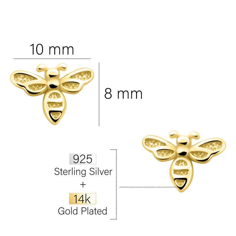 - ELEGANT & TIMELESS - Fashionable, gold-plated silver stud earrings with bee design - suitable for any occasion and versatile combinations