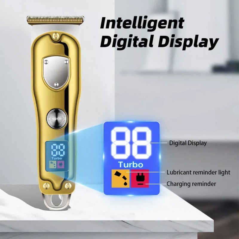 Cordless Hair Trimmer with LED Display: Features a smart LED display, which clearly shows battery power in percent, charge indicator that helps get the job done even quicker. You can control the usage time according to remaining battery life.
