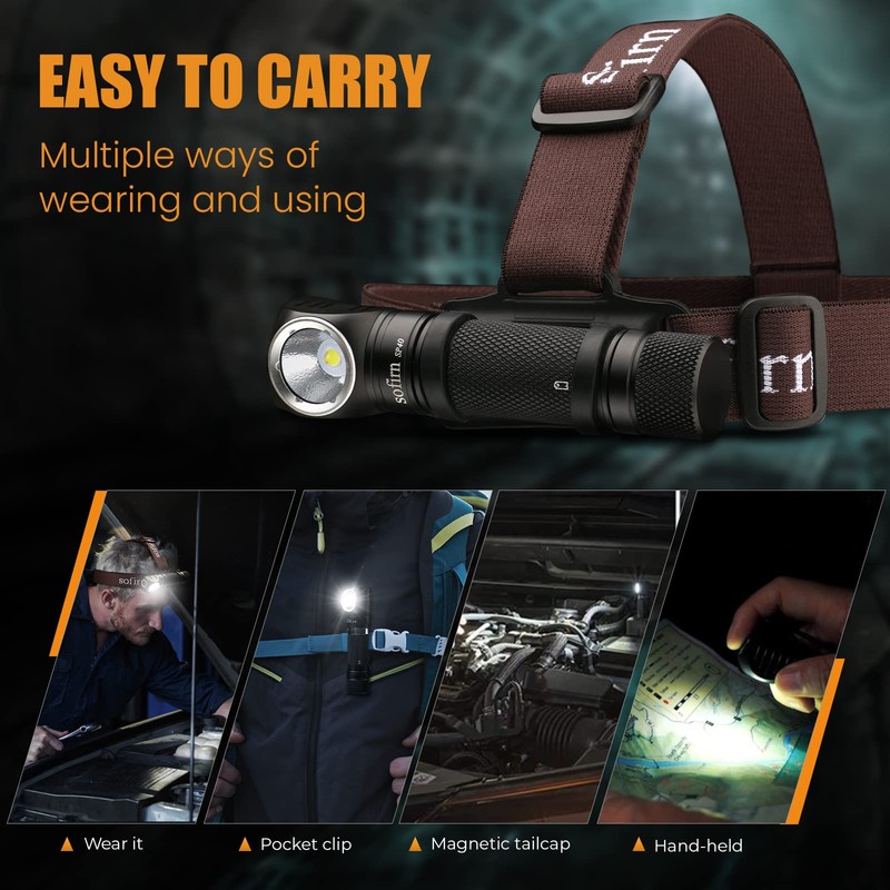 sofirn SP40 Rechargeable Headlamp 1200 Lumen, Powerful 5500K LED Flashlight, Right Angle Headlight for Repairing Running Camping Hiking