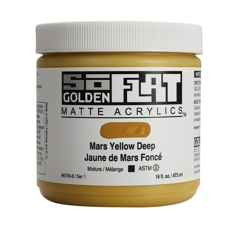 SoFlat Matte Acrylics by GOLDEN, Mars Yellow Deep, 16 fl. oz. Jar, Professional Acrylic Paint, Opaque