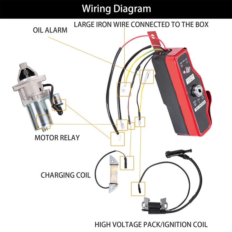 • Package including : 1*GX390 Starter Motor with Solenoid +1* FlyWheel + 1*Key Switch Box with Keys + 1*Charging Coil+ 1*Mounting Bolts Set