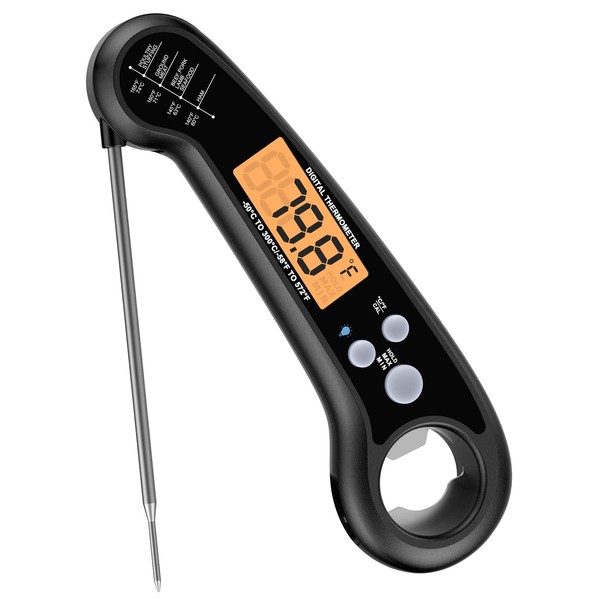 - LED-Anzeige mit Hintergrundbeleuchtung - Das Thermometer ist so konzipiert, dass es beleuchtet ist, so dass Sie es auch an dunklen Orten deutlich verwenden können. Einfach zu bedienen und mit detaillierten Referenztemperaturen für Lebensmittel ist ein großes Geschenk Option.