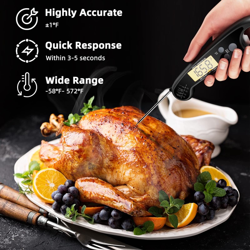 - Genau und schnell - Das Instant Read Fleischthermometer liefert in ca. 3 Sekunden einen genauen Messwert mit einer Genauigkeit von +/-1 Grad und einem Messbereich von -58°F bis 572°F(-50°C ~ 300°C).