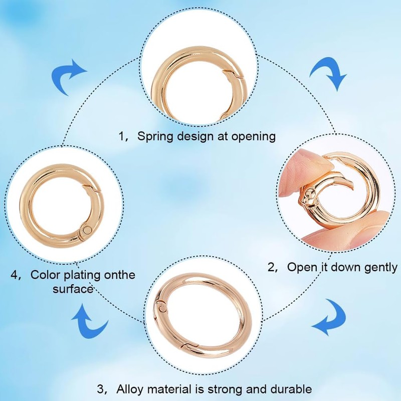 - Widely Used: These spring gate rings are suitable for making harnesses, clothing and luggage straps, handbags, key chains and dog collars, handbags, flat ropes, belts, you can make beautiful DIY crafts out of them, and they are also a great choice for gifts to family and friends